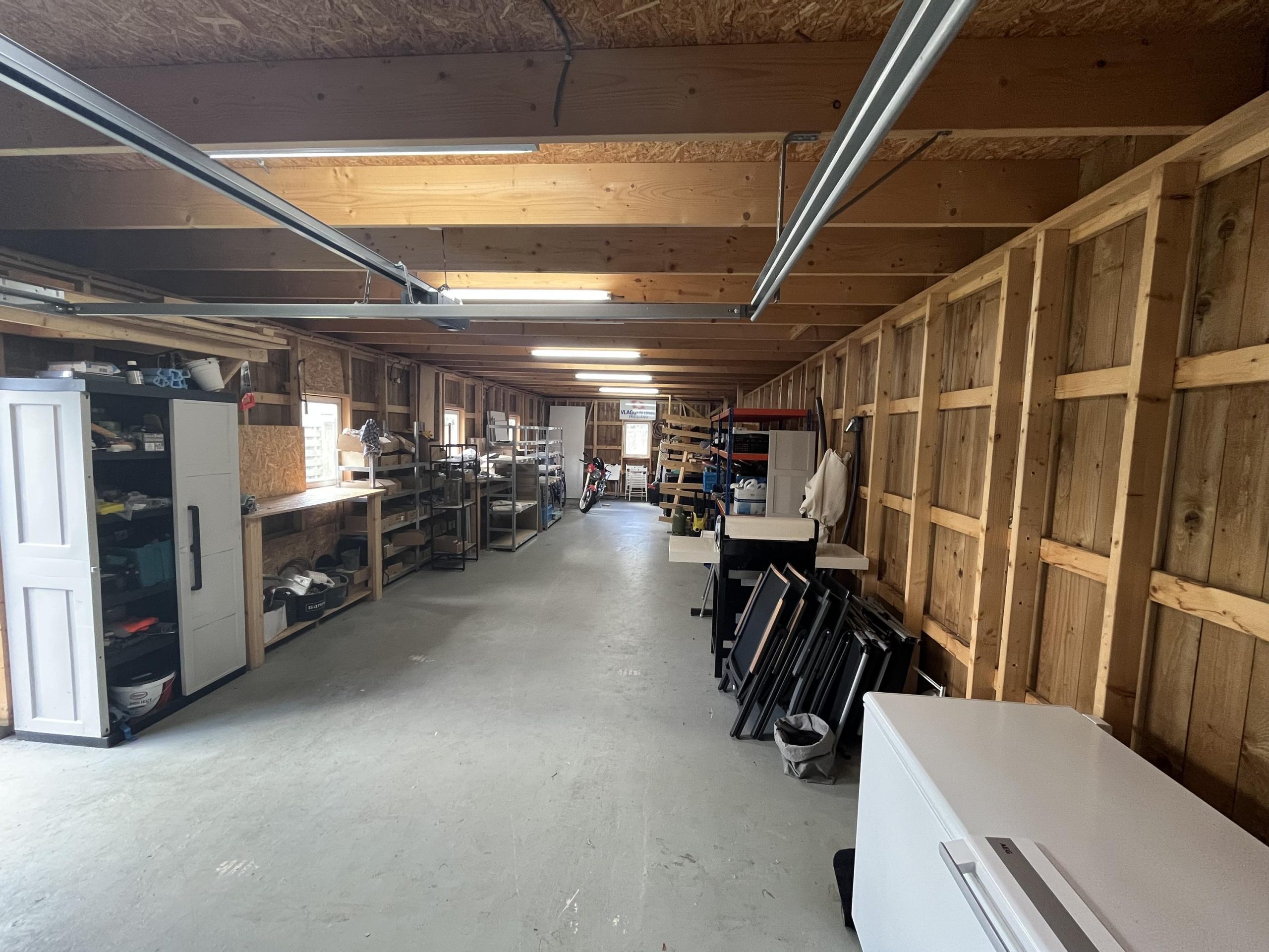 Bij de woning hoort een riante garage/bedrijfsruimte met overheaddeur waar bedrijfsactiviteiten kunnen worden uitgevoerd. Op eigen terrein is voldoende plek voor meerdere voertuigen.
