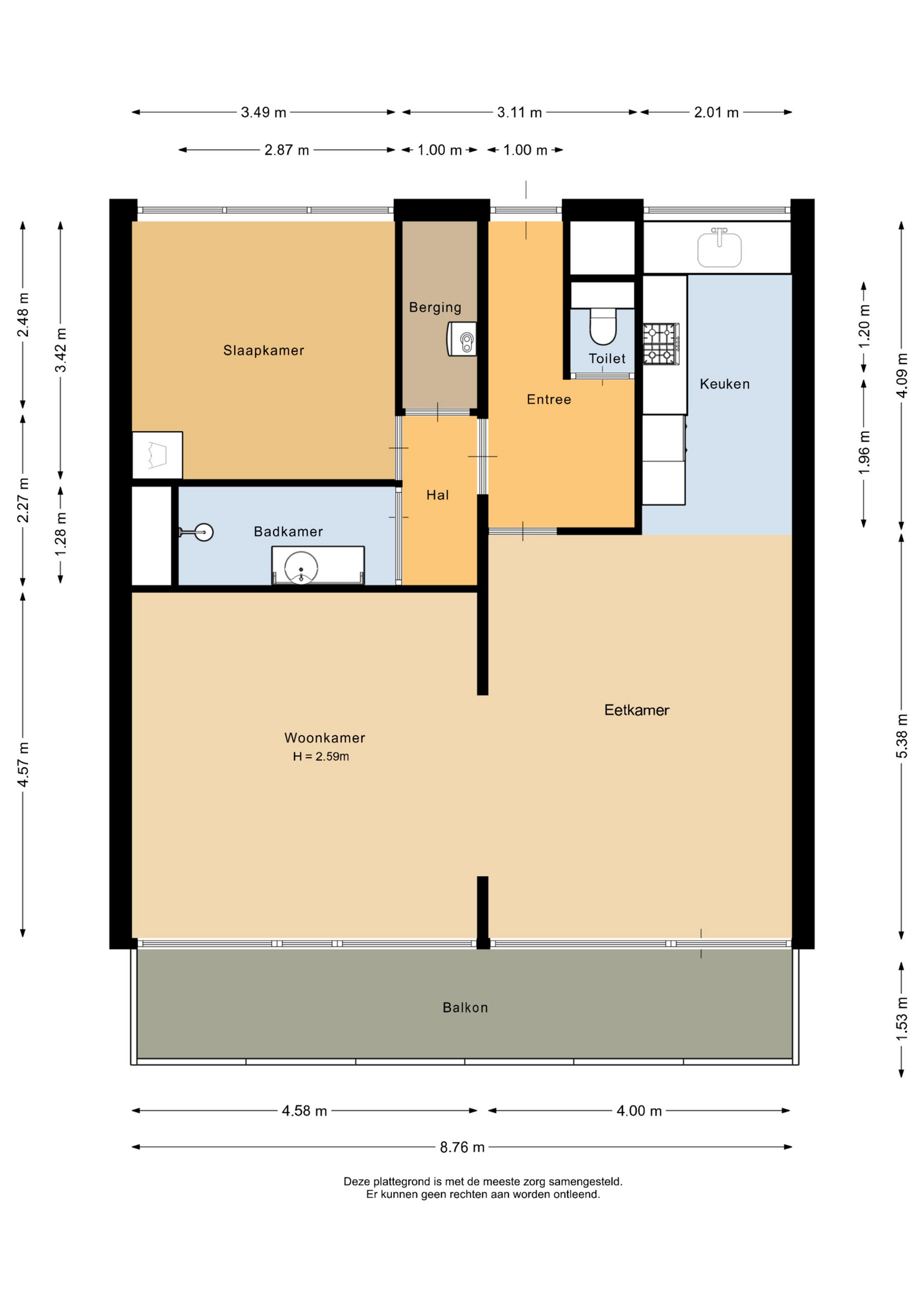 Hoewel deze woningpresentatie met de grootst mogelijke zorg is samengesteld blijft de mogelijkheid bestaan dat er fouten en/of onvolledigheden in de omschrijving aanwezig zijn. Noch de verkoper, noch ons kantoor aanvaarden in dit geval enige aansprakelijkheid.
